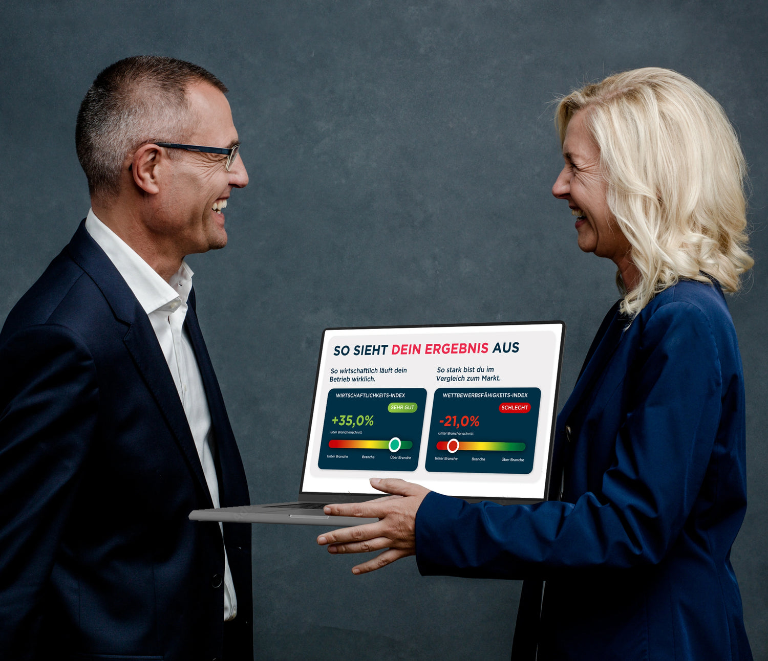 Endlich weißt du wo dein Geld entsteht – und wo es verloren geht. Verglichen mit Betrieben deiner Branche in deiner Region.